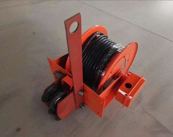 A spring reel is a spring-driven device specifically designed for automatically winding power or signal cables. As the moving equipment (such as cranes or trolleys) moves, the cable is pulled out, while the spring winds around the mandrel, storing energy. When the equipment returns, the spring releases the energy, driving the reel to rotate in the opposite direction, thus achieving synchronous cable winding.