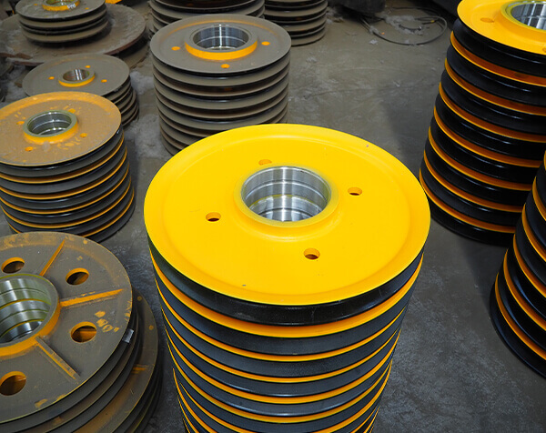 The crane pulley block is a fixed structural component composed of a fixed pulley and a movable pulley, which works with the hook group to save effort and change the direction of force. It is made of cast iron, cast steel or rolled steel. The rope groove radius is designed to be 0.6 times the diameter of the wire rope to optimize the contact surface, and the bearing uses a rolling bearing to improve the transmission efficiency. Its mechanical efficiency is affected by the gravity of the object, the deadweight of the movable pulley and friction factors. The load capacity ranges from 5 tons to 100 tons. It is mainly used in heavy lifting equipment such as bridge cranes and port machinery.