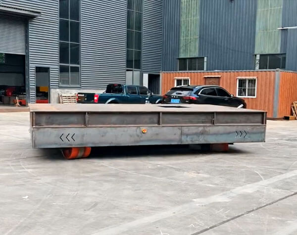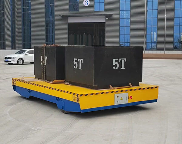 1. Unlike rail-guided flatcars, it operates without the constraints of a track, allowing for free turning and movement.