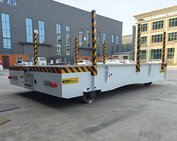 The 360° rotating trackless flatcar is a new type of material handling equipment. It can move and turn without the need for laid tracks, offering highly flexible and independent motion capabilities. Utilizing omnidirectional drive technology, each wheel is individually controlled by a separate motor for precise movement. It can move freely in all directions without altering its body posture, fully meeting customer needs. Furthermore, the use of batteries makes it more energy-efficient and environmentally friendly. The omnidirectional car can also autonomously design the shortest point-to-point transport route, significantly improving production and loading/unloading efficiency. Simultaneously, it is equipped with automatic obstacle avoidance and an emergency stop button to prevent collisions from the outset, reducing the risk of equipment damage, cargo loss, and personnel injury.