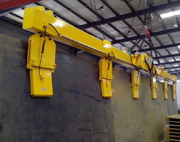 This lifting Electromagnet is suitable for turning slab caster for the purpose of checking & surface finishing its up and down surface and for lifting and transporting thick plate and tube caster as well, it can turn slab caster around 180° degree when being lift by the crane equipped with guide column.