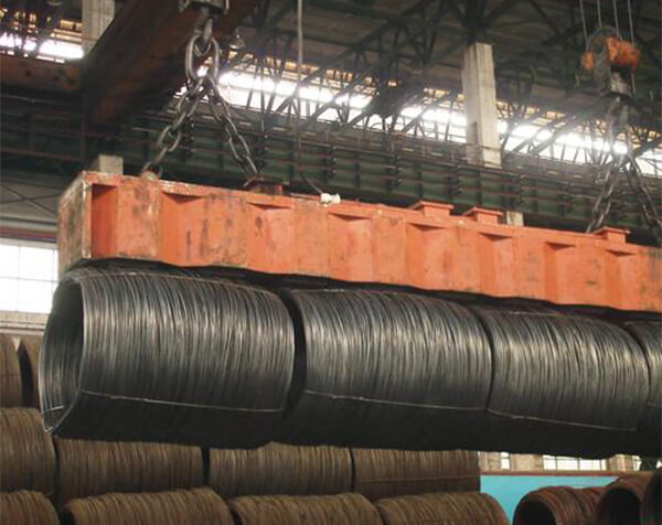 MW19 series, owing to light self-weight, reasonable structure (just contact with 2 points of the bar) is suitable for coiled bar. Its magnetic pole is suitable for coiled bar which is of different diameter. The length of coiled bar is important in choosing the right electromagnet. It can be put into operation along length or width direction of electromagnet and multiple units can be used together or separately as well.